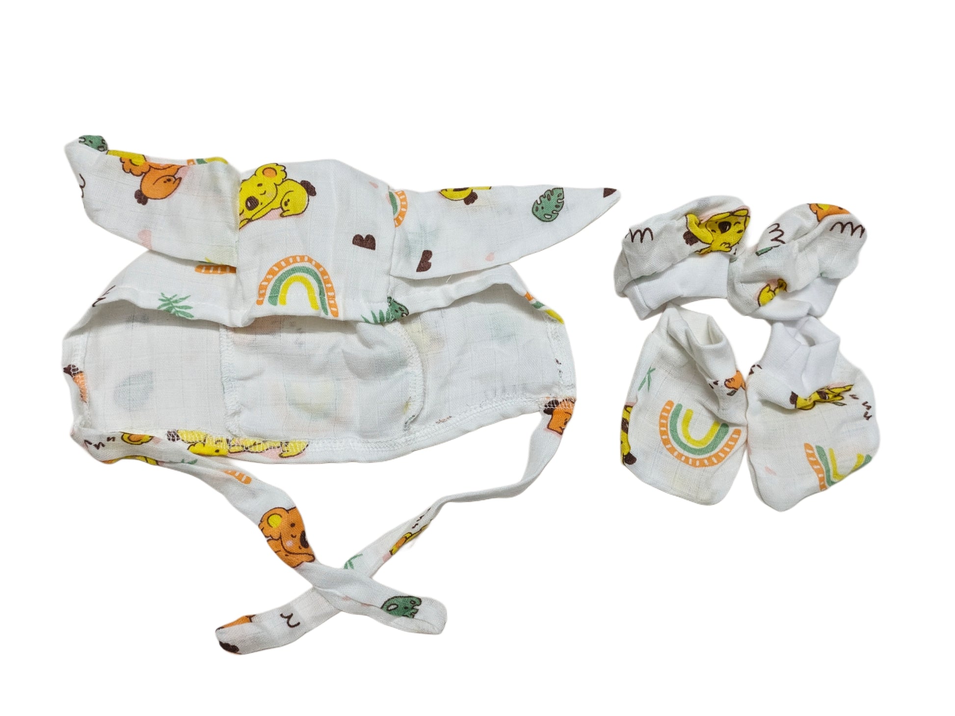 Wrap your baby in pure comfort from fingers to toes with our 🌿 Muslin Cotton Booties & Mittens Set — thoughtfully designed for your little one’s delicate skin. Made from 100% organic muslin cotton, this set is ultra-soft, breathable, and gentle, making it perfect for everyday wear in any season.